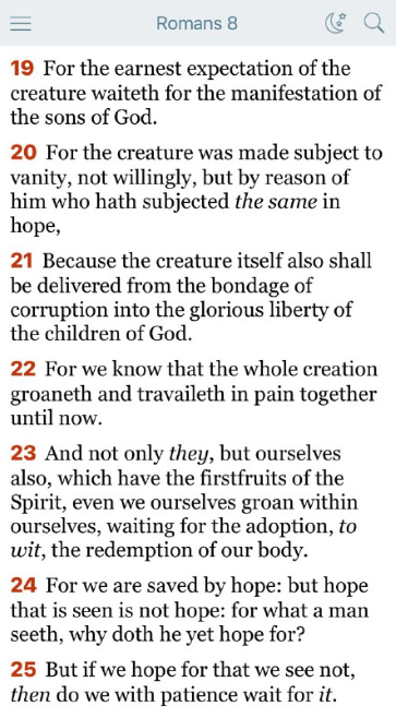 19 被造物は、神の子たちの出現を切に待ち望んでいます。