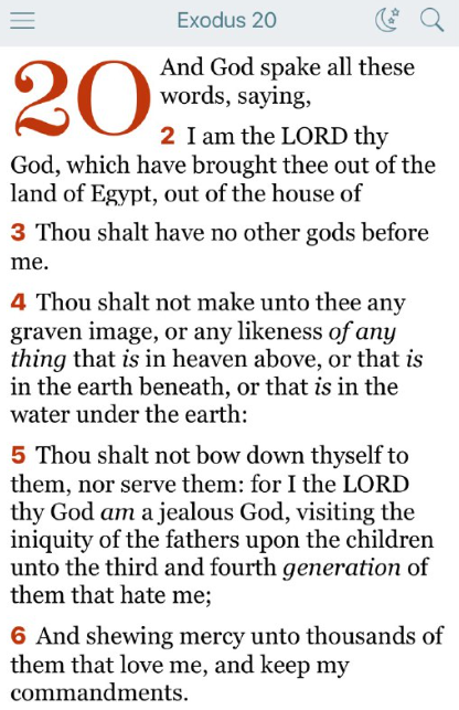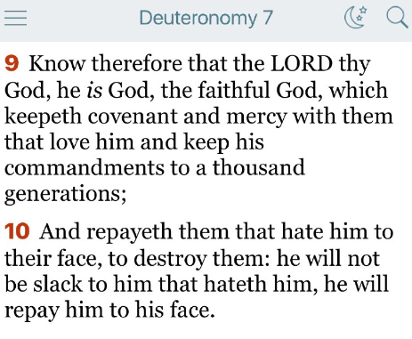 わたしを憎む者には、父の咎を子孫に三代、四代まで報いる。