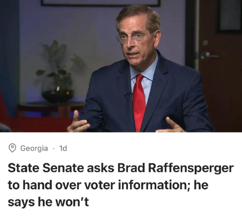 ジョージア州のブラッド・ラフェンスパーガー州務長官は、州上院の決議を無視し、有権者の機密情報を司法省に引き渡すことを拒否すると誓った。ラフェンスパーガー氏は、社会保障番号全体を含むデータを提供することはジョージア州法に違反すると述べた。