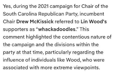 2021年のサウスカロライナ州共和党議長選挙で、ドリュー・“I Love Lady G(※リンジー・グラハムのこと。トランスジェンダーで実は女性).”・マッキシックが、私を支持してくれた真の愛国者を「ワッカドゥードル」と呼んで侮辱しようとしたのを覚えています。