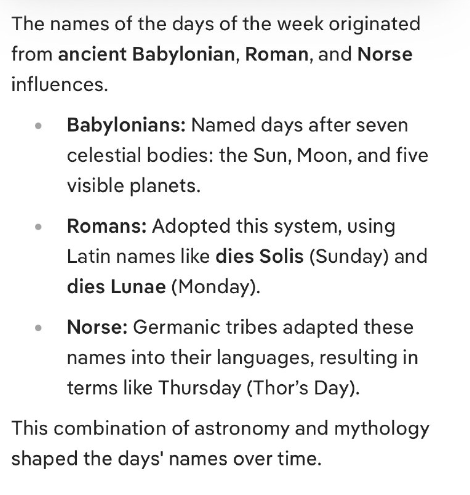 曜日の名称は、古代バビロニア、ローマ、そして北欧の影響を受けて生まれました。