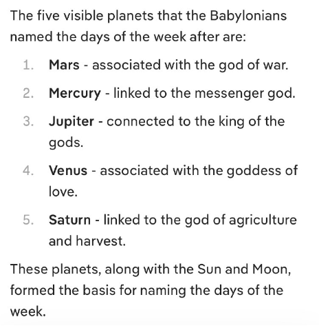 神秘のバビロニアの古代バビロニア人は、5つの「目に見える」惑星に基づいて、どのようにして曜日を名付けたのでしょうか???