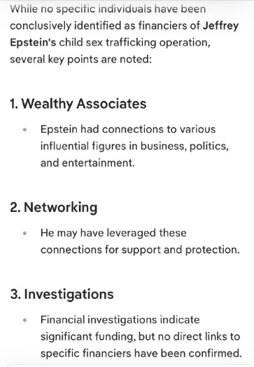 ジェフリー・エプスタインの児童性的人身売買組織の資金提供者として特定の人物が決定的に特定されたわけではありませんが、いくつかの重要な点が指摘されています。