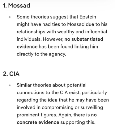 エプスタインは裕福で影響力のある人物との関係から、モサドと関係があった可能性があるという説もあります。しかし、彼がモサドと直接関係していたことを示す確固たる証拠は見つかっていません。 - CIA