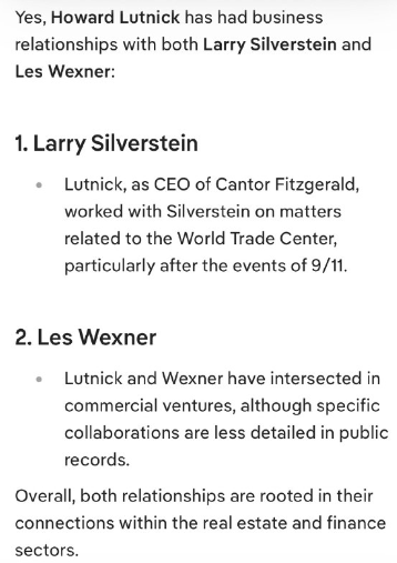 はい、ハワード・ラトニックはラリー・シルバースタインとレス・ウェクスナーの両方とビジネス関係を持っていました。