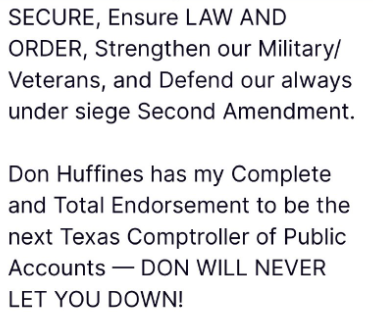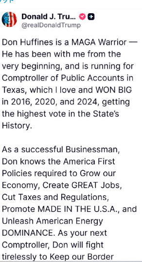 ドン・ハフィンズ氏を次期テキサス州会計監査官に