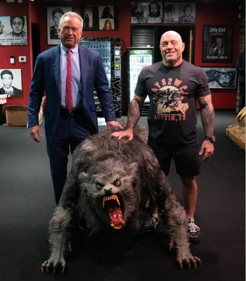 RFKジュニアとジョー・ローガンが人工の狼男と一緒にポーズをとっています!!!