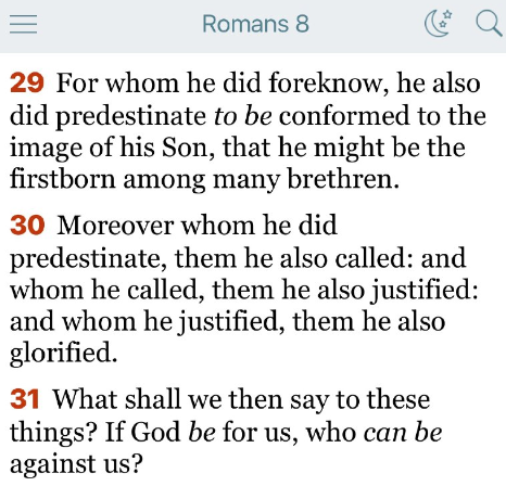 31 では、これらのことについて、私たちは何と言ったらよいでしょうか。もし神が私たちの味方であるなら、だれが私たちに敵対できるでしょうか。