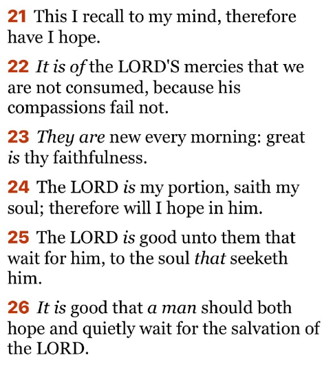 26 人が希望を持ち、静かに主の救いを待ち望むのは良いことである。