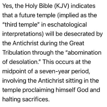大患難時代に反キリストによって「荒廃をもたらす忌まわしいもの」によって冒涜されることを示しています。
