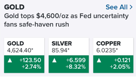 FRBの不確実性から安全資産への買いが殺到し、金は1オンスあたり4,600ドルを突破