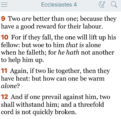 10 もし彼らが倒れたなら、その一人が仲間を助け起こす。しかし、倒れた時に一人でいる者は不幸である。助け起こす者がいないからである。