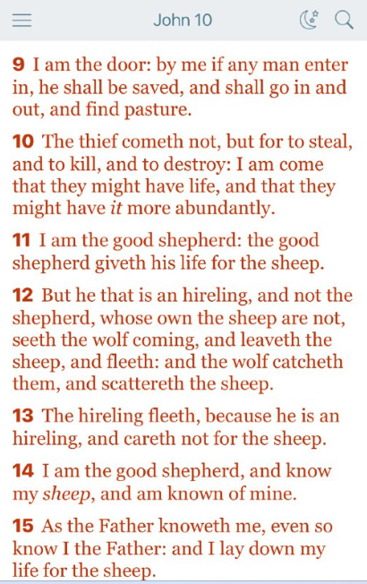 10 盗人が来るのは、盗むため、殺すため、滅ぼすため以外の何者でもない。わたしが来たのは、羊に命を得させ、それを豊かに得させるためである。