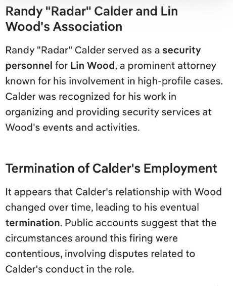 ランディ・「レーダー」・カルダーは、著名な弁護士リン・ウッドの警備員を務めていました。