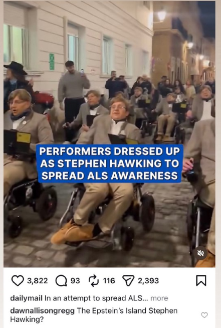 ALS啓発のためにスティーヴン・ホーキング博士に扮したパフォーマーのグループは、2026年のカディス・カーニバルに参加したスペインのパフォーマンスグループです。イベント概要