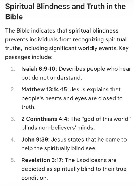 聖書は、霊的な盲目は、重要なこの世の出来事を含む霊的な真理を認識することを妨げると述べています。