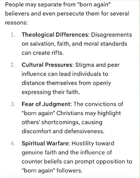 人々は「生まれ変わった」信者から離れ、迫害することさえあります。その理由はいくつかあります。