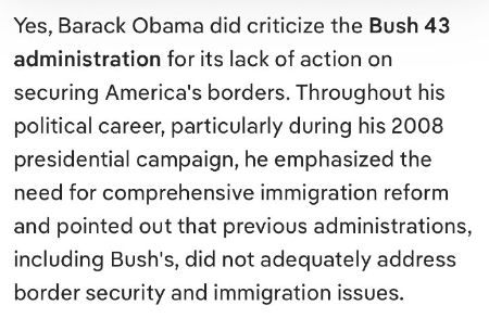 はい、バラク・オバマ氏は、ブッシュ43世政権がアメリカの国境警備に十分な対策を講じなかったことを批判しました。彼は政治家としてのキャリアを通じて、特に2008年の大統領選挙運動中、包括的な移民制度改革の必要性を強調し、ブッシュ政権を含む歴代政権が国境警備と移民問題に適切に対処していなかったと指摘しました。