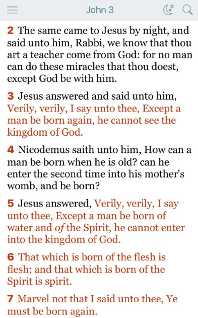 5 イエスは答えられた。「まことに、まことに、あなたに告げます。人は水と霊とから生まれなければ、神の国に入ることはできません。」