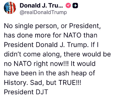 NATOのためにドナルド・J・トランプ大統領以上に貢献した人物、あるいは大統領は他にいません。