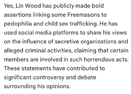 はい、リン・ウッドは、一部のフリーメイソンが小児性愛や児童性的人身売買に関与しているという大胆な主張を公に行いました。彼はソーシャルメディアのプラットフォームを利用して、秘密組織の影響や疑惑の犯罪行為に関する見解を共有し、一部の会員がそのような恐ろしい行為に関与していると主張しました。これらの発言は、彼の意見をめぐる大きな論争と議論を巻き起こしました。