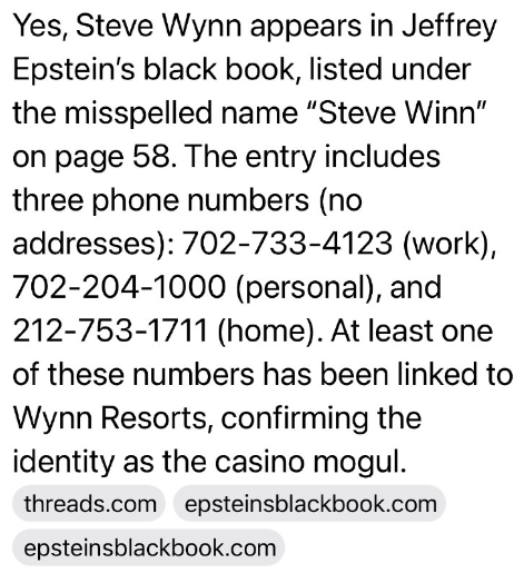 はい、スティーブ・ウィンはジェフリー・エプスタインのブラックブックに、スペルミスのある「スティーブ・ウィン」という名前で記載されています。