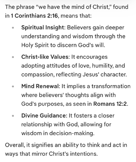 コリント人への第一の手紙2章16節にある「私たちはキリストの思いを持っている」という言葉は、次のことを意味します。