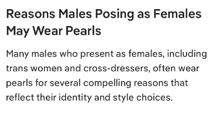 トランスジェンダーや女装者など、女性を装う男性の多くは、自分のアイデンティティやスタイルを反映する、いくつかの説得力のある理由で真珠を身につけることがよくあります。