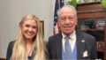 人物: 中央の人物は、長年アイオワ州選出の上院議員を務めている共和党のベテラン政治家、チャック・グラスリー氏に似ています。