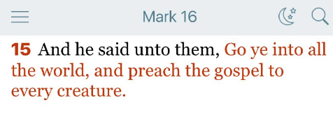 15節 そしてイエスは彼らに言われた、「全世界に出て行き、