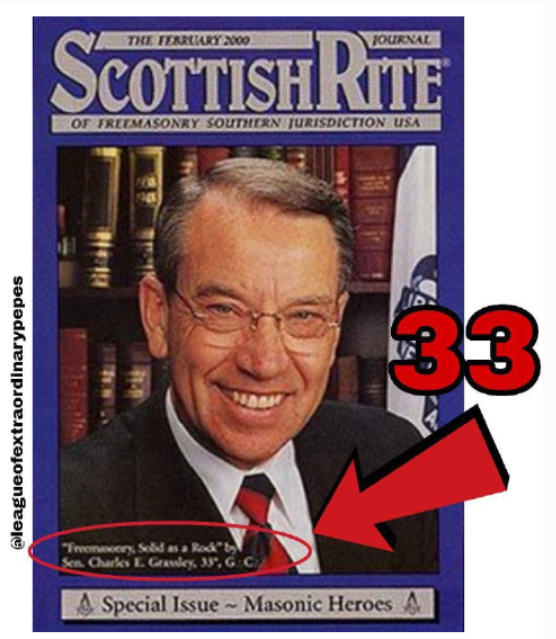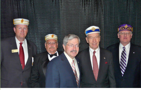 この画像は、フリーメイソンのメンバーが特定の階級を示す帽子を着用している様子を示しています。画像中央の人物は、米国の政治家チャック・グラスリー上院議員(アイオワ州選出)である可能性が高いです。詳細情報
