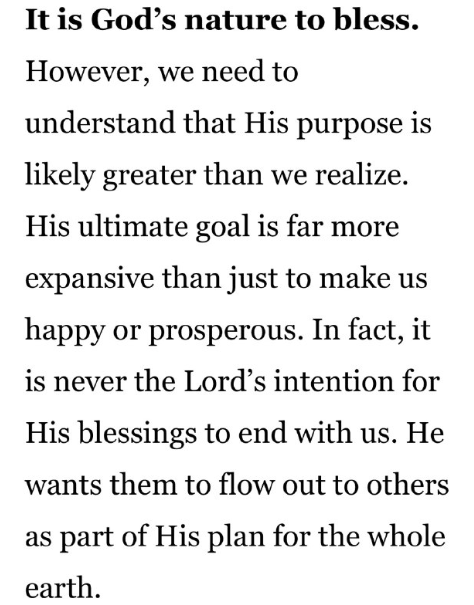 全地のための計画の一部として、祝福が他の人々に注がれることです。