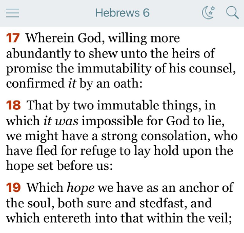 17神は、約束の相続者たちに、ご計画の不変性をさらに豊かに示したいと願って、誓いをもってそれを確証されました。