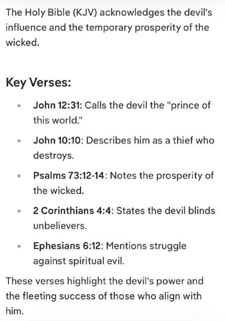 聖書(欽定訳聖書)は、悪魔の影響力と、悪人の一時的な繁栄を認めています。
