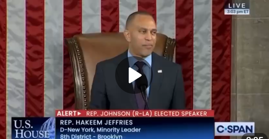 マイク・ジョンソン議長が議会で前例のない信任投票を獲得したことを祝福します。
