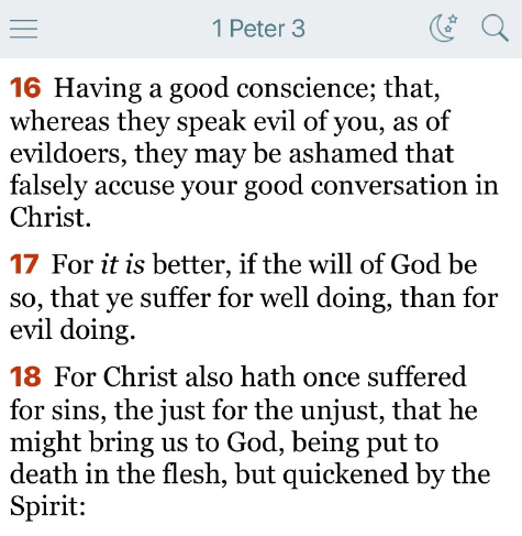 キリストも、私たちを神のもとに導くために、一度罪のために苦しまれました。正しい方が不義な者のために苦しまれたのです。