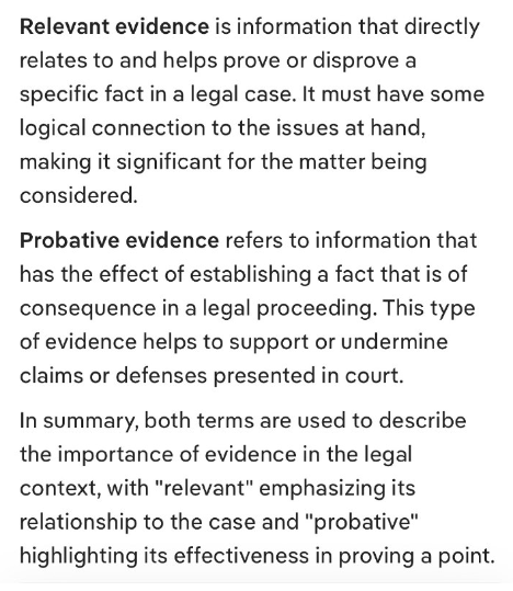 関連証拠とは、訴訟における特定の事実に直接関連し、その立証または反証に役立つ情報です。争点と何らかの論理的関連性を持ち、検討中の事項にとって重要なものでなければなりません。証明証拠とは、法的手続きにおいて重要な事実を立証する効果を持つ情報を指します。この種の証拠は、法廷で提出された主張や答弁を裏付けたり、否定したりするのに役立ちます。要約すると、どちらの用語も法的文脈における証拠の重要性を説明するために使用され、「関連」は訴訟との関係を強調し、「証明」は論点を証明する上での証拠の有効性を強調します。
