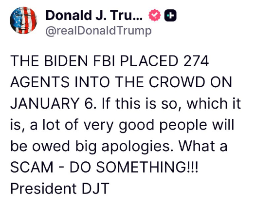 バイデンFBIは1月6日に274人の捜査官を群衆の中に配置しました。
