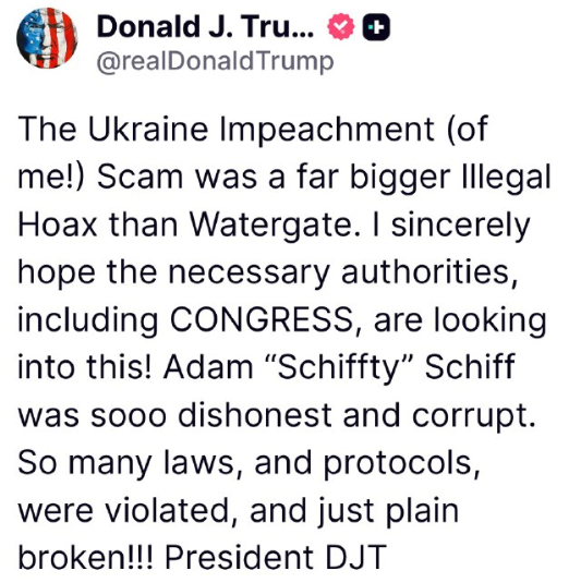 ウクライナ弾劾(私に対する!)詐欺は、ウォーターゲート事件よりもはるかに重大な違法な詐欺でした。議会を含む関係当局がこの件を調査することを