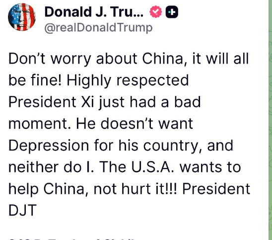 自国が不況に陥ることを望んでいないし、私も望んでいない。アメリカは