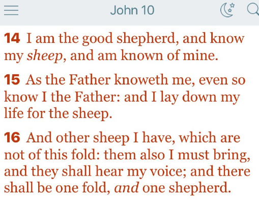 16 わたしには、この囲いにいない他の羊もいます。わたしは彼らをも連れて来なければなりません。彼らはわたしの声に聞き従います。そして、一つの囲い、一つの羊飼いとなるのです。
