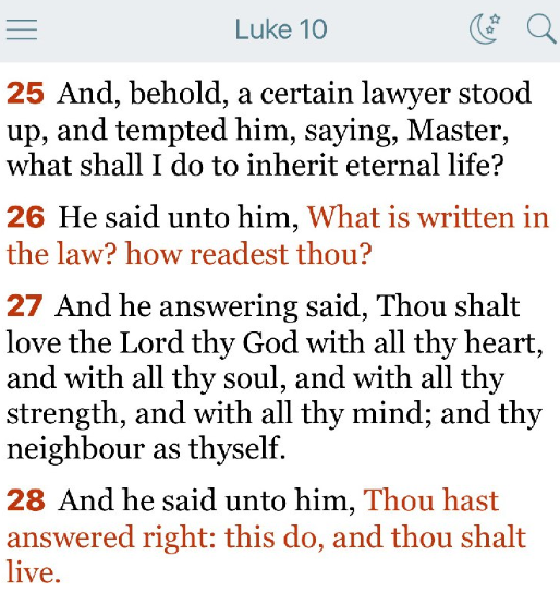 イエスは言われた。「あなたの答えは正しい。そのように行いなさい。そうすればあなたは生きる。」