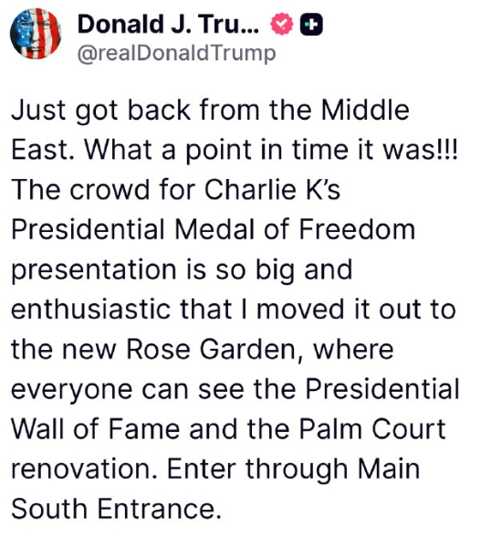 ※大統領自由憲章はずっと悪魔側の賞だった。今回のチャーリー・カークへの授賞もスポットライト