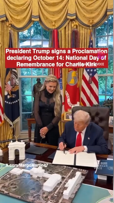 トランプ大統領は、10月14日を「チャーリー・カーク追悼の国民的日」と宣言する宣言に署名しました。