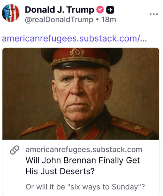 最後に、なぜ私はブレナンを「悪の典型」と見ているのか。それは私の直感によるものだ。しかし同時に、トランプ氏が初めて大統領に就任したばかりの頃、チャック・シューマー氏が放ったあの有名な警告を思い起こさせる。「いいか、諜報機関に立ち向かえば、奴らはどんな手段を使ってでもお前に報復してくる」