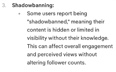 一部のユーザーは、「シャドウバン」されたと報告しています。これは、知らないうちにコンテンツが非表示になったり、表示が制限されたりすることを意味します。