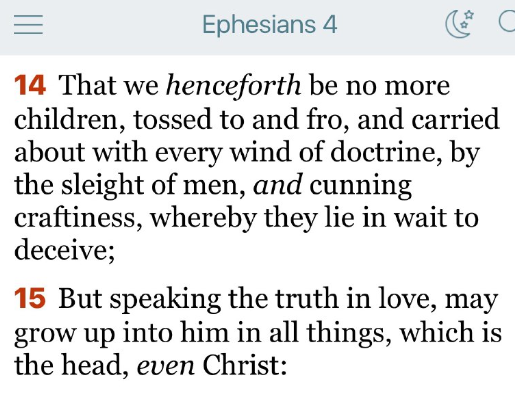 私たちはもはや子供ではなくなり、人々の策略や悪巧みによって、あらゆる教えの風に吹きまわされたり、もてあそばれたりすることがなくなります。