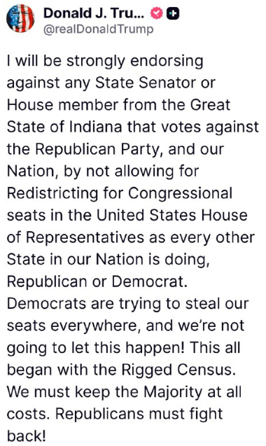 共和党、民主党を問わず、他の州と同様に、米国下院の議席再編を認めないのです。