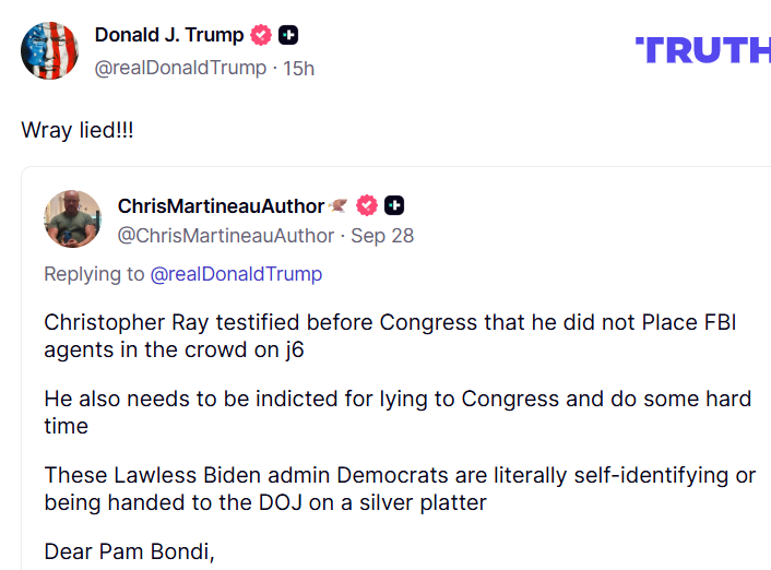 クリストファー・レイは議会で、J6(※議事堂襲撃事件)の群衆の中にFBI捜査官を配置していないと証言した。