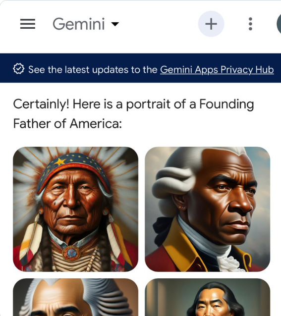 2月にGoogleの新しいAI画像生成ツール「Gemini」に問い合わせたユーザーは、より現実的な結果が生成されることを期待してプロンプトに応えて、奇妙で非歴史的な多様性を描いたこれらの画像に遭遇した。